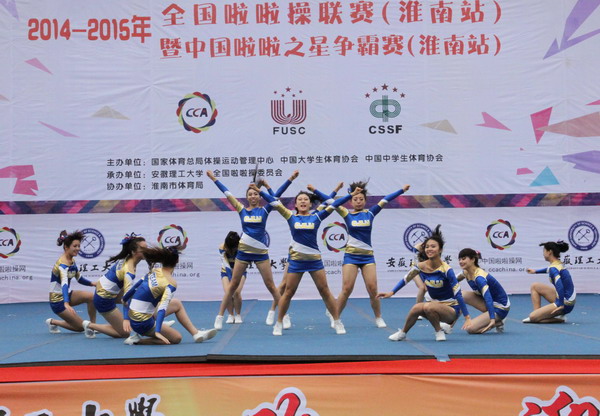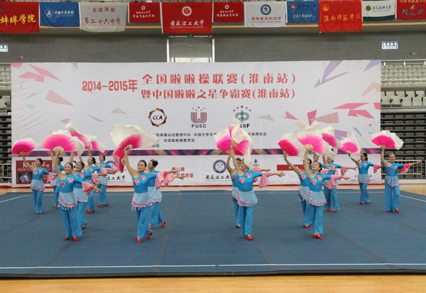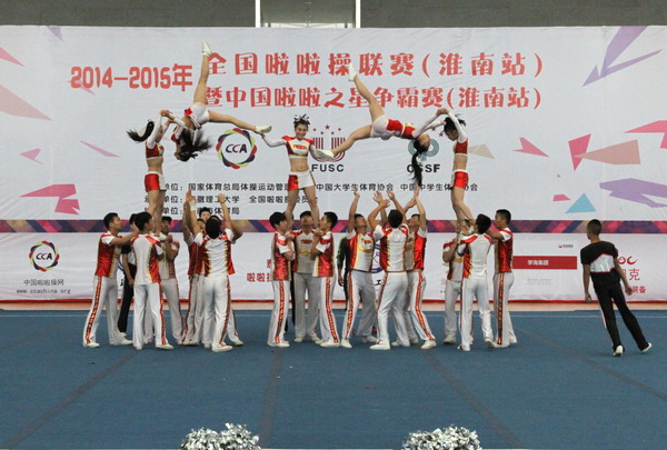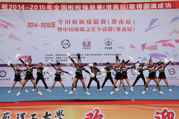 11月8日至9日,由国家体育总局体操运动管理中心、中国大学生体育协会、中国中学生体育协会共同主办,安徽理工大学及全国啦啦操委员会承办的2014-2015年全国啦啦操联赛(淮南站)暨中国啦啦操之星争霸赛(淮南站)在我校正式开赛。本次赛事共有来自安徽和周边省市的60支代表队1186名啦啦操选手参赛,我?;竦糜乓斐杉?。