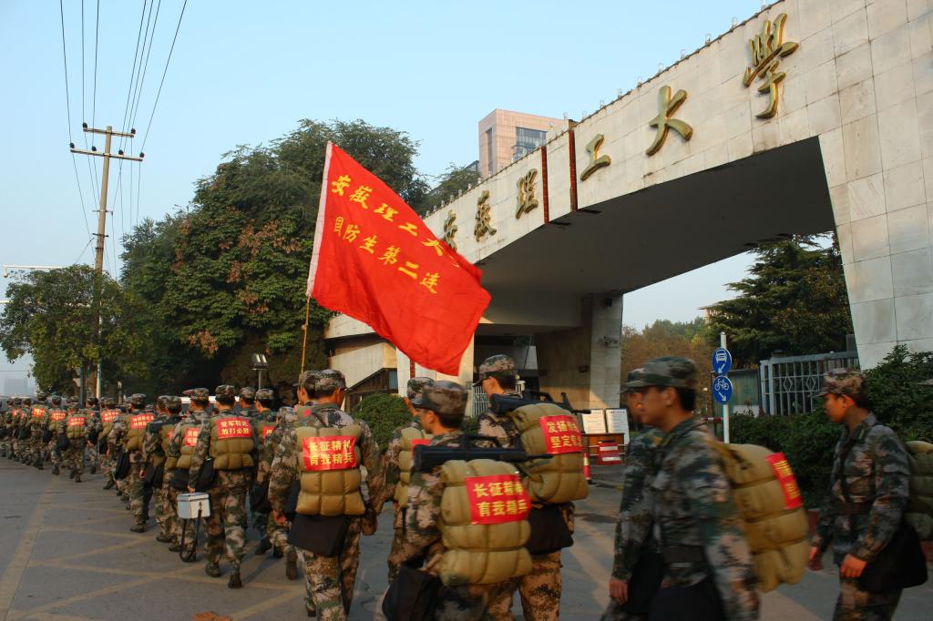 10月18日上午7时30分,伴随着南京军区驻校选培办主任辛崇波的一声号令,安徽理工大学132名国防生,身背行囊,开始了“励志—2014”野外徒步行军拉练活动。本次拉练全程36公里,旨在锤炼国防生军人作风,塑造国防生强军之魂。选培办主任辛崇波、副主任金绍启,干事马龙和张九鼎以及学生处、保卫处、校医院相关老师一路随军前行。