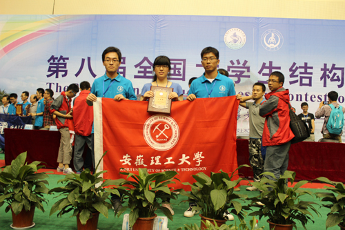 9月17日-20日,第八届全国大学生结构设计竞赛在长安大学举行。大赛吸引了国内清华大学、同济大学、浙江大学等通过土木工程专业评估的101所高校的102支队伍、500余名师生参赛。由我校土木建筑学院11级唐琼、胡亚南和李孝坤3位同学组成的学生代表队,在副教授杨明飞、宗翔老师的指导下,以作品“岿然”获得了本次大赛三等奖。