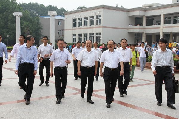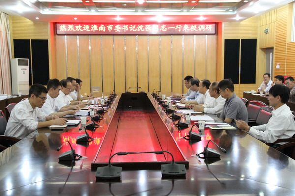 9月24日下午,淮南市委书记沈强在市委常委、市委宣传部部长陈儒江,副市长成祖德,市委副秘书长、市委办公室主任李辉等陪同下,专程来我校调研。校长郭永存会见了沈强一行,并在新图书馆北会议室召开了调研座谈会。副校长叶醒狮、王其东、孟祥瑞,校纪委书记周峰,校党委常委、党政办公室主任张海军参加了会议。