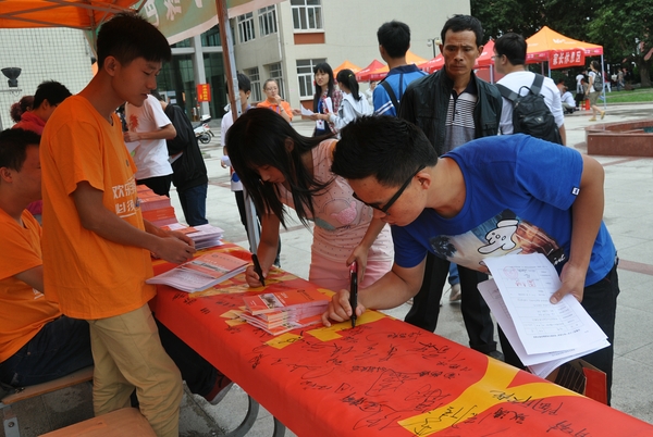 活动受到了新生和家长们的大力支持与称赞,一位来自安徽黄山的新生家长说道:“我知道现代社会是个法治社会,也是个契约社会,个人的征信记录真的非常重要,你们的宣传和提醒很及时。国家为我孩子上学提供了免息贷款,我们进行诚信承诺也是十分应该的,而且孩子一旦养成了诚信的良好习惯,对他将来走上社会也是非常有益的。”