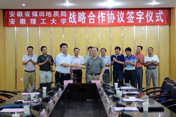 为了进一步推进校企合作办学和产学研用一体化发展进程,不断提升学校教学科研实力,增强企业发展后劲,努力实现“培养创新型应用人才”的目标,经友好协商,我校与安徽省煤田地质局建立校企合作关系。8月19日,安徽省煤田地质局党委书记、局长魏振岱,党委委员、副局长章云根,地质科技处处长谢长仑、勘查研究院院长张文永、宣传部副部长周元宝等一行5人来校,与我校签署战略合作协议,校长郭永存、副校长孟祥瑞等出席了签字仪式,签字仪式在图北会议室举行。