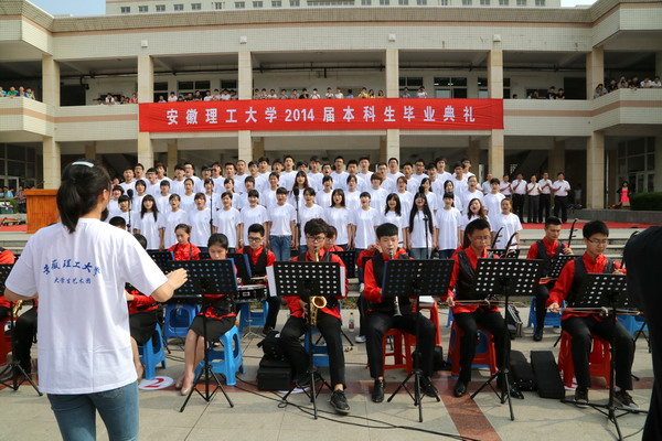 毕业典礼在校大学生合唱团现场演奏的《大学无疆》校歌声中落下了帷幕。