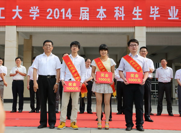 副校长叶醒狮、校党委副书记王洪为双优生颁发证书并合影留念