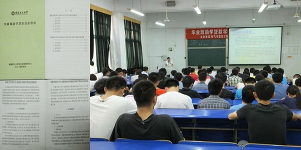 以贷款毕业生群体为重点,集中组织开展“四个一”活动:学校统一印发《生源地助学贷款还款指南》,进一步明确还款流程、诚信履约和违约责任,确保1139名贷款毕业生人手一份;学校统一印制《安徽理工大学2014届助学贷款毕业生诚信承诺书》,由各学院组织全体贷款毕业生集中学习承诺书并在承诺书上签字;校院两级分别邀请银行专业人员组织开展专题讲座,宣传普及征信、金融等相关知识,宣讲诚实守信事迹,倡导契约精神,促使学生树立诚信观念、增强法律意识,确保每一位贷款毕业生在离校前接受了一次征信与金融知识教育;及时组织并按规定流程为每一位贷款毕业生办理毕业确认手续,确保学生忠实履行贷款合同。