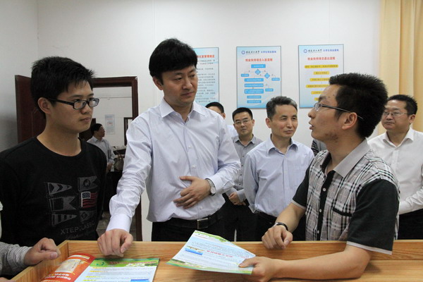 5月16日下午,淮南市副市长钱力一行在校党委副书记王洪陪同来下,调研我校大学生自主创业工作。
