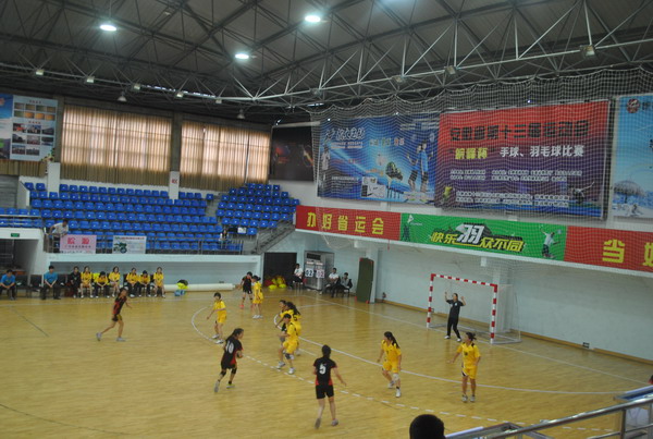 5月10日上午,安徽省十三届运动会高校部手球比赛在安庆市潜山县体育馆拉开战幕。共有来自省内12所高校19支代表队、300余名运动员参加了比赛。经过5天39场的激烈角逐,我校男、女手球队分别荣获男子甲组冠军,女子甲组亚军的好成绩,为学校争得了荣誉,扩大了影响,提高了我校的知名度。同时,我校代表队杨帆、赵东、马瑶和陈晨还获得了大赛优秀运动员的荣誉称号。
