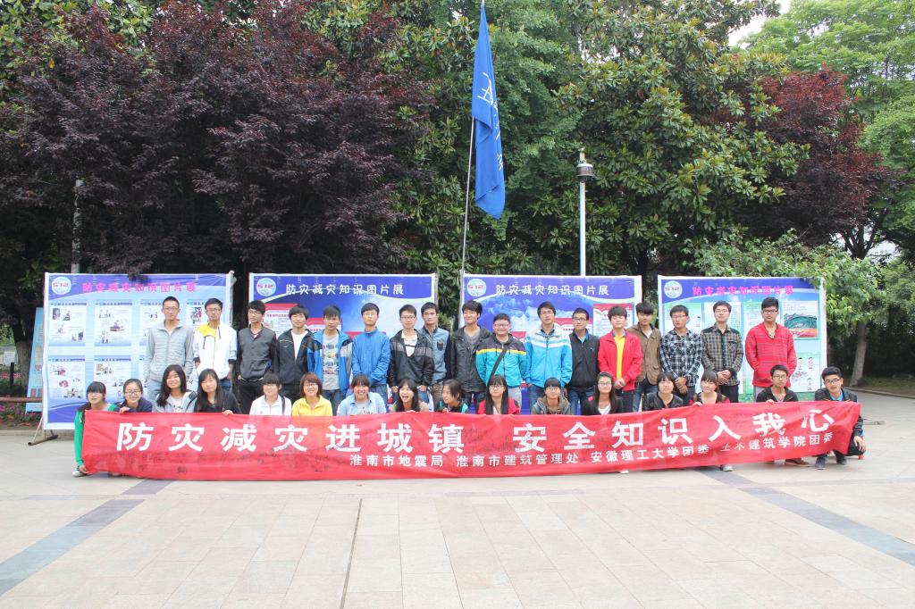 5月11日,由安徽理工大学团委、淮南市地震局、淮南市建筑管理处、土木建筑学院共同举办的纪念第六个“防灾减灾日”科技宣传周活动启动,启动仪式在淮南市龙湖公园举行。