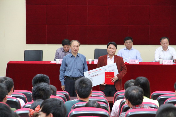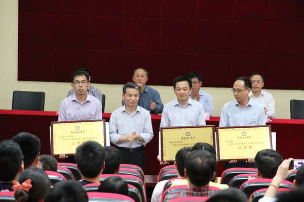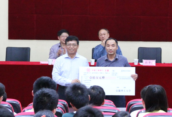 会上,副校长叶醒狮为2013年度安徽理工大学科技贡献个人奖张水平同志颁奖;校党委副书记王洪为2013年度安徽理工大学科技贡献集体奖一等奖能源与安全学院、二等奖测绘学院和三等奖人文社会科学学院颁奖。