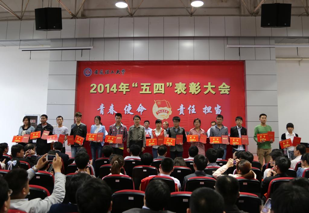 5月5日下午,我校2014年“五四”表彰大会在北校区图书馆2楼报告厅隆重召开。校领导颜事龙、叶醒狮、孟祥瑞等出席会议并为受表彰的先进集体和先进个人颁奖。大会由校团委书记王先江主持。