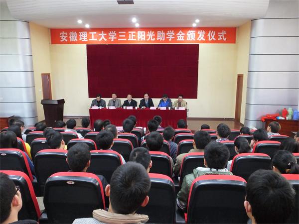 三正阳光助学金是由安徽省高新技术企业三正集团股份有限公司出资,于2012年开始在我校设立的,用于资助我?;倒こ萄г汉偷缙胄畔⒐こ萄г貉俺杉ㄓ帕?、家庭经济困难的学生,今年是第三次颁发。