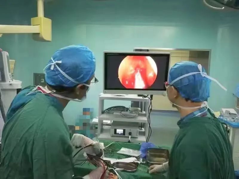 为了给患者制定一个最佳手术方案,医院眼科谢驰主任、神经外科黄冠敏主任、耳鼻喉科朱明副主任医师又一起交流研讨,结合患者情况制定周密的手术实施方案。“手术一开始设想了多种方案,有考虑从前额部进入手术路径,但是可能会造成切口感染、术后额窦口狭窄引流不通畅,担心脑积液鼻漏引起颅内感染,而且有可能损伤眼部神经肌肉?!被乒诿糁魅谓樯芩?,最终结合患者的临床症状以及影像学检查,经过三科共同分析研判,考虑额、筛窦粘液脓性囊肿伴右慢性化脓性上颌窦炎,且已对右侧眼眶肌肉神经及脑部构成压迫,决定经鼻腔行鼻内窥镜下多个鼻窦开窗术微创手术,并提前制定了相关预案,一旦手术中前颅底受损伤,形成脑积液鼻漏,将及时进行修补手术。