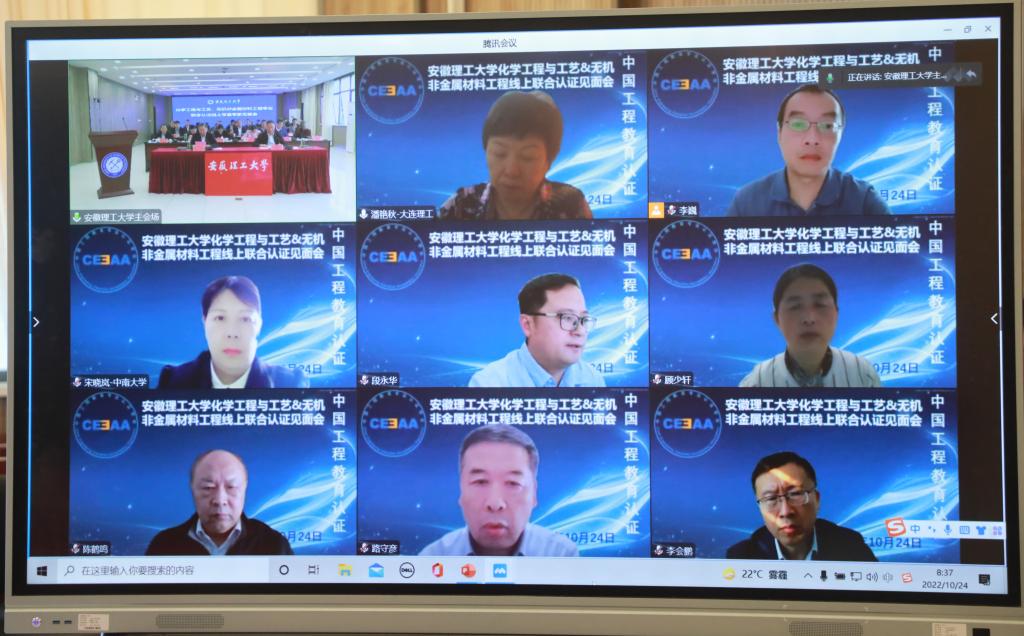 10月24日至25日,由联合考查专家组组长、南京邮电大学陈鹤鸣教授,化学工程与工艺专业专家组组长、大连理工大学潘艳秋教授,无机非金属材料工程专业专家组组长、中南大学宋晓岚教授等一行8人组成的工程教育专业认证专家组,对我?;Чこ逃牍ひ?、无机非金属材料工程专业开展线上联合考查。