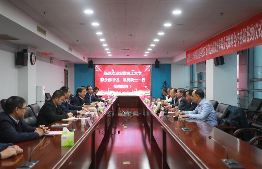 徐修平对郭永存、袁亮一行的到访表示热烈欢迎,并从历史沿革、组织架构、主营业务、专业领域、成果专利、核心优势等方面介绍了中钢矿院总体情况,从人才优势、平台优势、科技研发及技术优势、成果转化、品牌优势等五个方面全面阐述了中钢矿院的核心技术、典型技术成果及技术成果推广成效。希望双方秉持“开放共享、优势互补、协同创新、融合发展”的理念,将科研院所优质丰富的科学研究资源转化为学校人才培养优势,共享各方在科研与教育平台、基地、设施及仪器等方面的资源,在采矿,选矿,安全,环保,岩土,理化、爆破,新材料、信息技术等领域联合开展研究生培养,探索科教融合协同育人新模式,以此次签约为契机,进一步加强合作,促进科教协同发展。