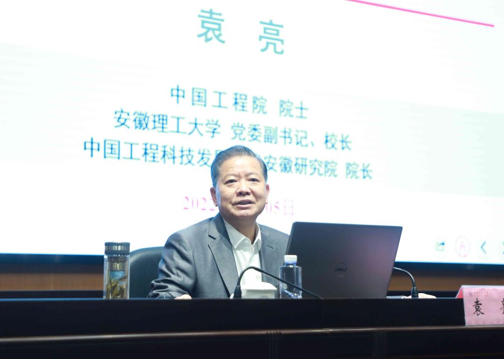 校党委副书记、校长袁亮院士应邀作了题为《我国碳达峰、碳中和战略及路径思考》的学术报告;袁亮从习近平总书记在二十大报告中指出的“我们要加快发展方式绿色转型,实施全面节约战略,发展绿色低碳产业,倡导绿色消费,推动形成绿色低碳的生产方式和生活方式”切入,系统剖析了我国碳达峰、碳中和战略的沿革背景,“双碳”战略推进情况以及面临的挑战,从强化“双碳”目标顶层设计、布局重大科技创新平台、加强绿色低碳技术攻关、大力发展分布式能源和微型电网工程、阔斧改革人才培养机制等五个方面对实现“双碳”目标进行了战略思考并提出了对策建议。袁亮还介绍了学?!八母鋈谌搿狈⒄拐铰院汀叭小薄叭薄叭健钡劝煅в死砟?、根据时代要求及时调整专业结构和学科布局,依托合肥高等研究院成立公共安全与应急管理学院、新能源与智能网联汽车学院、碳中和科学与工程学院、公共卫生学院,支撑我省十大战略新兴产业发展和“三地一区”建设方面开展的工作。