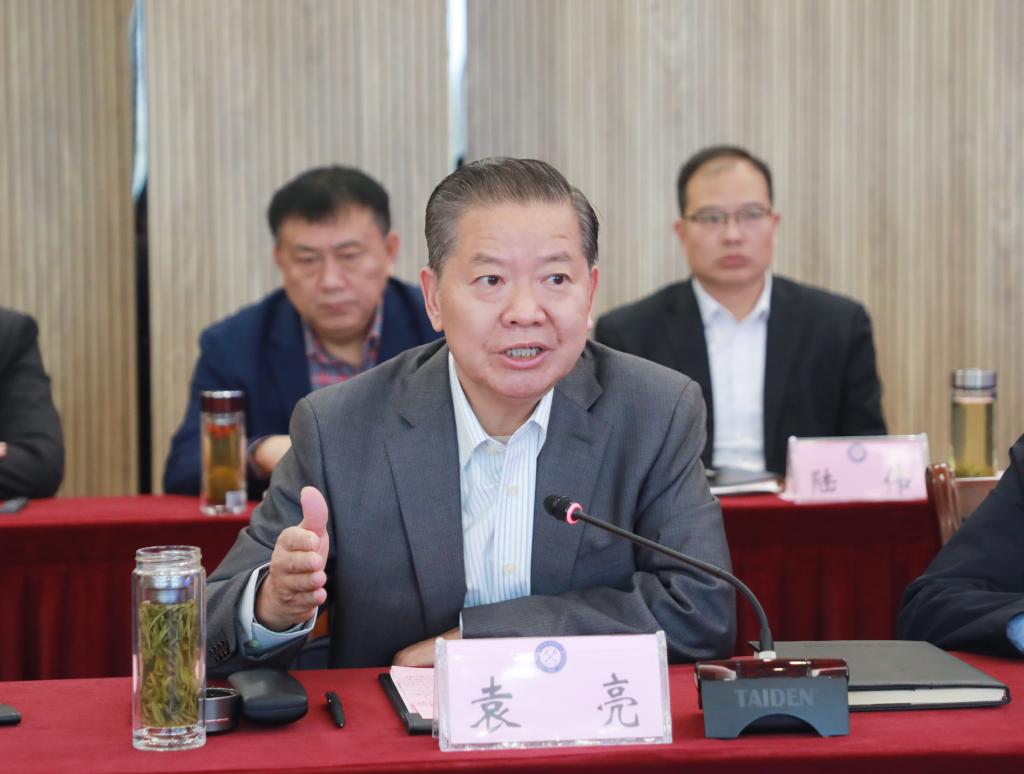 袁亮对中安联合积极支持学校学科建设及人才培养工作表示感谢,他介绍了学校近年来在国家和省部级科研平台获批及建设、科技创新、高峰学科建设、项目及成果、招生就业、人才引育方面取得的长足进步。袁亮表示,党的二十大报告提出,坚持教育优先发展、科技自立自强、人才引领驱动,加快建设教育强国、科技强国、人才强国,坚持为党育人、为国育才,全面提高人才自主培养质量,学校近年来积极实施“四个融入”发展战略,大力践行“三有”“三进”“三到”等办学育人理念,推深做实内涵式发展,着力提升学校办学质量和社会美誉度。学校工科历史积淀深厚,特别是煤炭安全智能精准开采、地质、环境、化工和材料学科底蕴深厚,近年来围绕煤炭清洁高效利用、煤基新材料等方向集聚人才、创新科技,取得了新的突破,致力于不断推进政产学研用协同发展,服务国家及地方经济发展总体布局。袁亮指出,中安联合落地淮南,为校企双方开展深度合作创造了先天的地缘条件。学校与中石化及中安联合签署的战略合作协议为校企双方开展联合协同创新,促进产教融合发展及培养高质量人才指明方向,希望校企双方进一步加强交流对接,以项目促合作,以定时会商等方式推动合作尽快落地,将高质量人才培养融入产教融合,不断加强高层次人才的工程实践背景。推动校企合作取得实效,带动地方经济社会高质量发展。