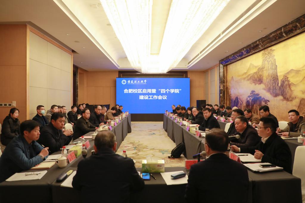 会议听取了公共安全与应急管理学院、新能源与智能网联汽车学院、碳中和科学与工程学院、公共卫生学院等“四个学院”学院建设发展规划的汇报;四个学院负责人分别从学院定位、办学目标、总体建设规划、学院组织架构设计、特色研究方向、科研成果转化、人才队伍、实验室和科研平台建设、发展愿景、建设任务年度工作目标与任务分解,急需解决的问题等与参会领导和相关部门负责人做了充分沟通交流。安徽省汽车工业学校书记王琨从合肥校区的基本情况、办学历史、师资力量、划转以来工作情况、为“四个学院”新进人员提供工作生活保障、部分教师参与实验室建设情况以及当前存在的问题及建议做了详细汇报说明。