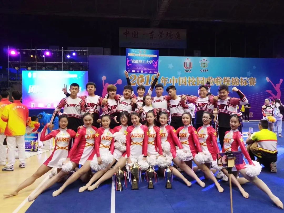 另一场比赛是2018年中国校园啦啦操锦标赛,这次比赛难度相较于第一次比赛上升了很多,而且团队报的项目较多,每个人需要参加两三项,任务比较重。这却没有影响到他们的心态,“我们训练时其实很放松,并不是特别紧张。”谢婷婷说。那次集训在八月份,正值暑假,学校发了西瓜,训练空隙,他们就在风雨操场训练馆中分着吃,与同伴谈笑着,在紧锣密鼓的训练里也品出了一分惬意??梢馔庾苁悄敲辞?,在这一次比赛前,谢婷婷的手臂在训练时不慎轻微扭伤,这是她第一次训练时受伤,她没有自乱阵脚,冷静处理后坚持正常参加比赛,令她开心的是扭伤并没有影响到此次表演,这次比赛中他们也取得了公开青年丙组集体技巧高级(3-4级)自选动作混合第一名、集体花球自选动作第二名的好成绩。
