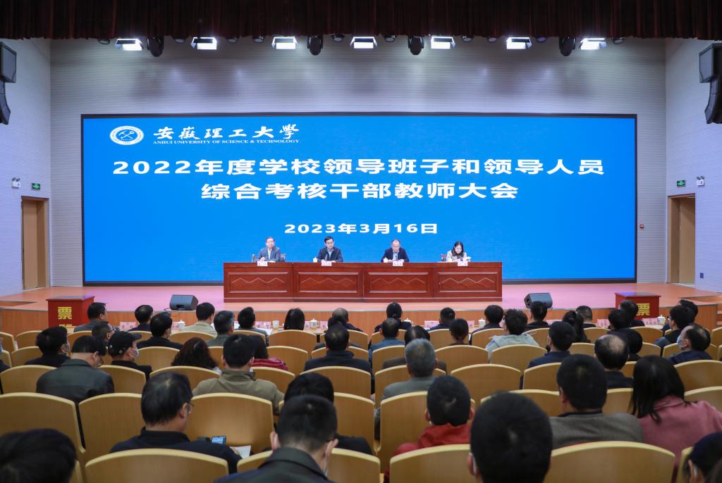 当天下午,学校在舜耕会堂召开干部教师大会。省委第十考核组成员出席会议。校领导,机关部门中层干部、学院(部)及直属单位正职、教师代表(包括省级以上“两代表一委员”、民主党派市级以上主委、学校教代会执委、正高职称人员)、学生代表参加会议。大会由校党委书记郭永存主持。