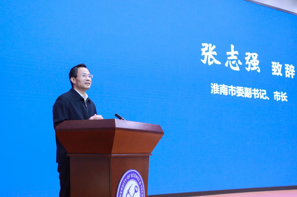张志强致辞。他代表淮南市委市政府向本次论坛的举办表示热烈祝贺!张志强指出,大学是人才培养的摇篮,是科技创新的高地,是城市发展的名片。安徽理工大学建校78年来,特别是新时代10年来,坚持为党育人、为国育才,积极融入国家和区域发展战略,办学取得了令人刮目相看的辉煌成就,建设了一批全国知名的高水平特色学科,培养了一批行业领军人才,取得了一大批重要的科技成果,为国家和地区经济发展作出了重要贡献?;茨嫌氚不绽砉ご笱喟槎⑾喟槌沙?,已经成为休戚与共的命运共同体、发展共同体?;茨舷衷谡υ谡铰曰龅?、发展活力集聚、加快产业转型、重振老工业基地雄风的关键时刻,正在聚焦“4个加快”,重振老工业基地雄风。产业的发展、区域的发展都离不开创新。党的二十大统筹部署科技、教育、人才工作,体现了创新在建设社会主义现代化国家中的重要作用,这也必将为安徽理工大学、淮南带来新的重要的契机。张志强表示,淮南市委市政府将一如既往地支持安徽理工大学高质量发展,在打造全国乃至世界高水平学科、高水平大学方面迈出坚实的步伐。