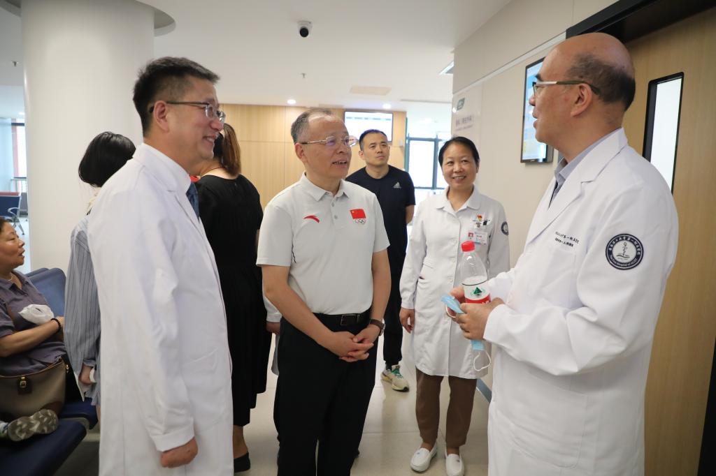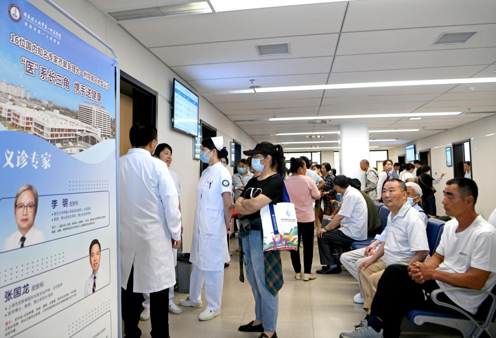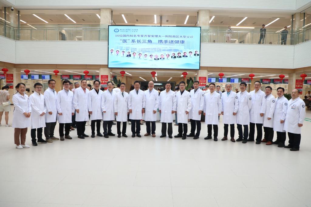 为进一步推动优质医疗服务,提升患者的就医体验感和获得感,5月26日上午,在学校第一附属医院南区开诊100天之际,一附院邀请长三角地区16位全国顶尖医学知名专家前来南区开展大型义诊活动,让广大群众在家门口就能享受到国内知名专家最优质的医疗服务,受到了群众的热烈欢迎和好评。校党委书记郭永存,校党委常委、副校长鲁超,一附院党委副书记、执行院长刘新矿参加了义诊活动。