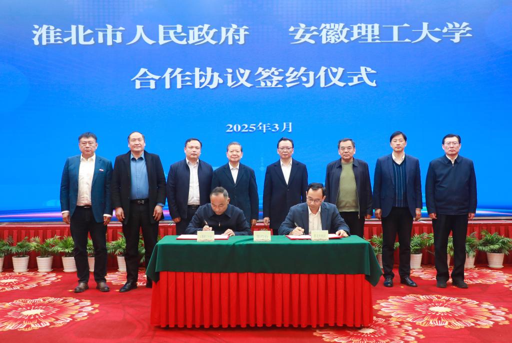 张平松、梁龙义分别代表安徽理工大学和淮北市签署战略合作协议。根据协议,双方将在科技创新、成果转化、人才培养、平台建设等领域开展深度合作。同时,学?;褂牖幢笨笠倒煞萦邢薰局耙挡》乐卧呵┦鹆恕陡绞糁耙挡》乐卧汗步蚣苄椤?。