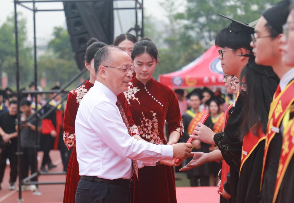 郭永存、袁亮等校领导为毕业生扶苏拨穗