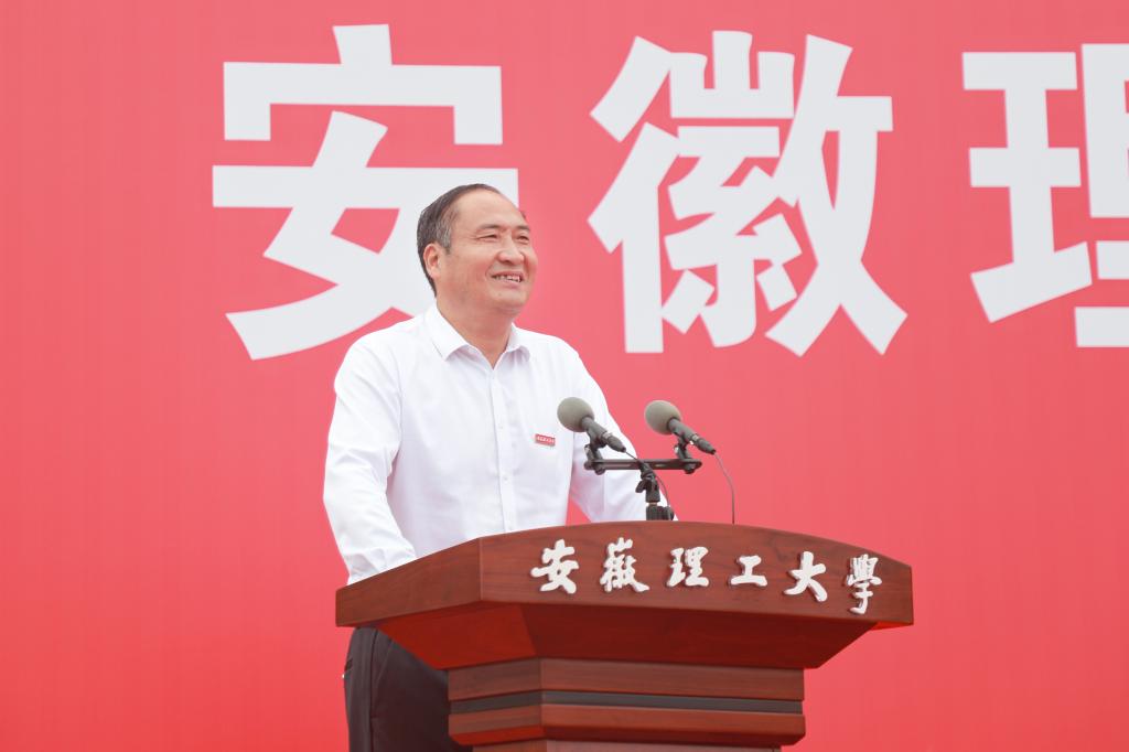 6月12日上午,学校2025届学生毕业典礼暨学位授予仪式在至诚体育场隆重举行。淮南市人民政府副市长、市政府党组成员范伟军,校党委书记郭永存,校党委副书记、校长袁亮院士,校党委副书记、常务副校长余玉刚,校党委常委、副校长鲁超、王先江、张平松、赵光明、徐良骥出席毕业典礼暨学位授予仪式。地质工程专业98级校友、苏州南智传感科技有限公司总经理魏广庆校友应邀出席。典礼由余玉刚主持。