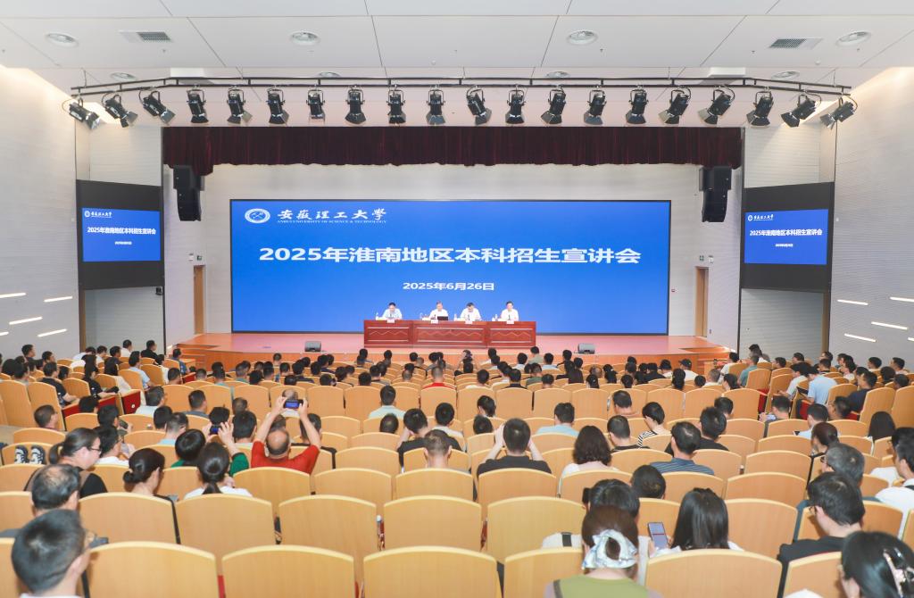 袁亮代表学校对淮南市委市政府长期以来鼎力支持学校建设发展、9所高中源源不断向学校输送优质生源表示衷心感谢,向淮南市2025年“上岸”高考学子表示由衷祝贺。他从学校工业报国初心出发,深情讲述学校建校80年奋斗历程,生动阐释学校“双一流”创建实践,真诚分享高质量发展成就,聚焦培育一流人才,重点介绍了学校办学格局新变化、学科专业新特色、平台项目新突破、人才队伍新支撑、学生成长新赛道,期待青年学子携手安理共同成就“双一流”创建目标!