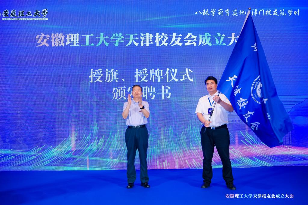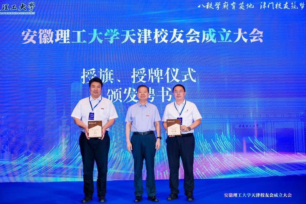 会上,袁亮为天津校友会授旗,为荣誉会长、会长授牌,袁亮、徐良骥共同为天津校友会理事会成员颁发聘书。