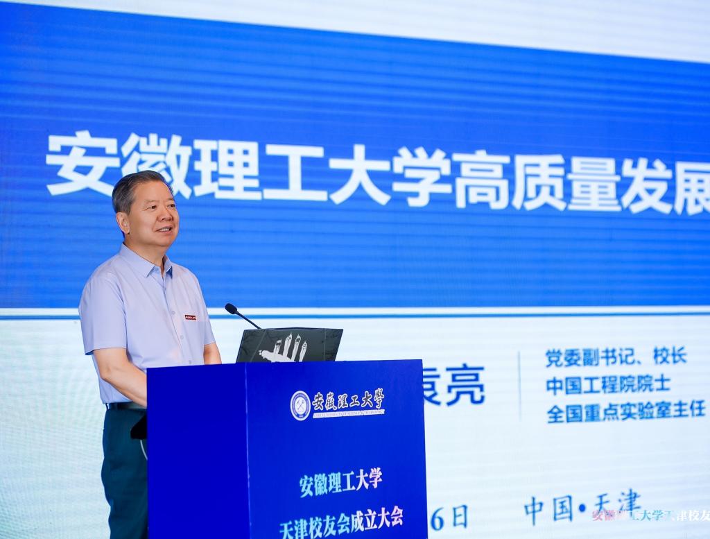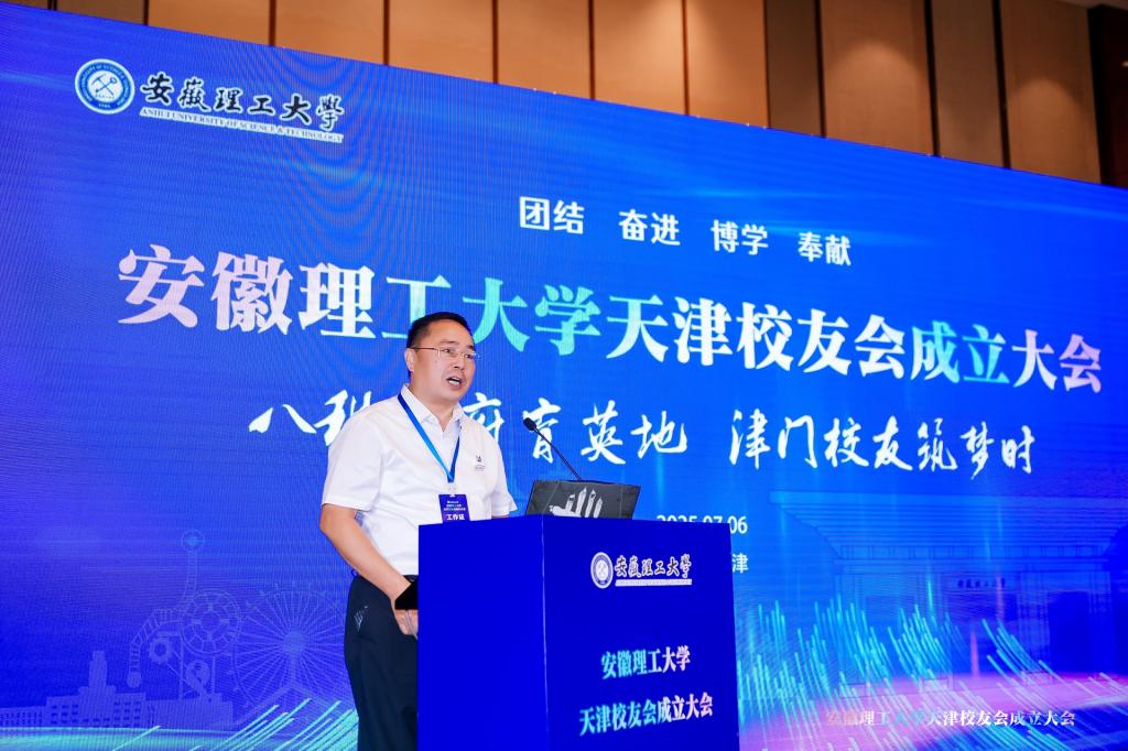 袁亮作《安徽理工大学高质量发展》报告。他介绍了学校的建设历程、办学成就、规划愿景,讲述了新时代安理人的奋斗故事以及取得的可喜成就。他指出,天津校友扎根渤海之滨,深度融入京津冀一体化与天津“一基地三区”建设,校友会的成立是安理精神在京津冀的延伸,期待校友们结合个人发展与母校“双一流”创建,为京津冀协同发展贡献安理智慧,书写校地共进新篇章。